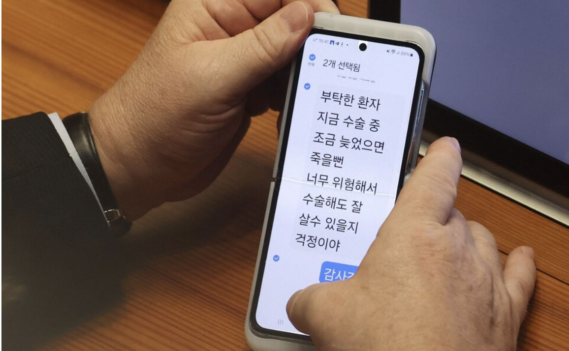 의대증원 문제를 둘러싼 의정 갈등으로 ‘응급실 뺑뺑이’ 등 의료공백 사태가 우려되는 상황에서 여당 지도부가 지인의 수술 청탁을 들어준 것처럼 보이는 문자가 기자들의 사진을 통해 포착되었습니다. 야당은 인 최고위원 문자를 ‘의료 대란’에 대한 여당 미온적 대응과 연결지어 “정부와 여당은 이런 식으로 버틸 수 있나 보다”라고 비판했습니다.